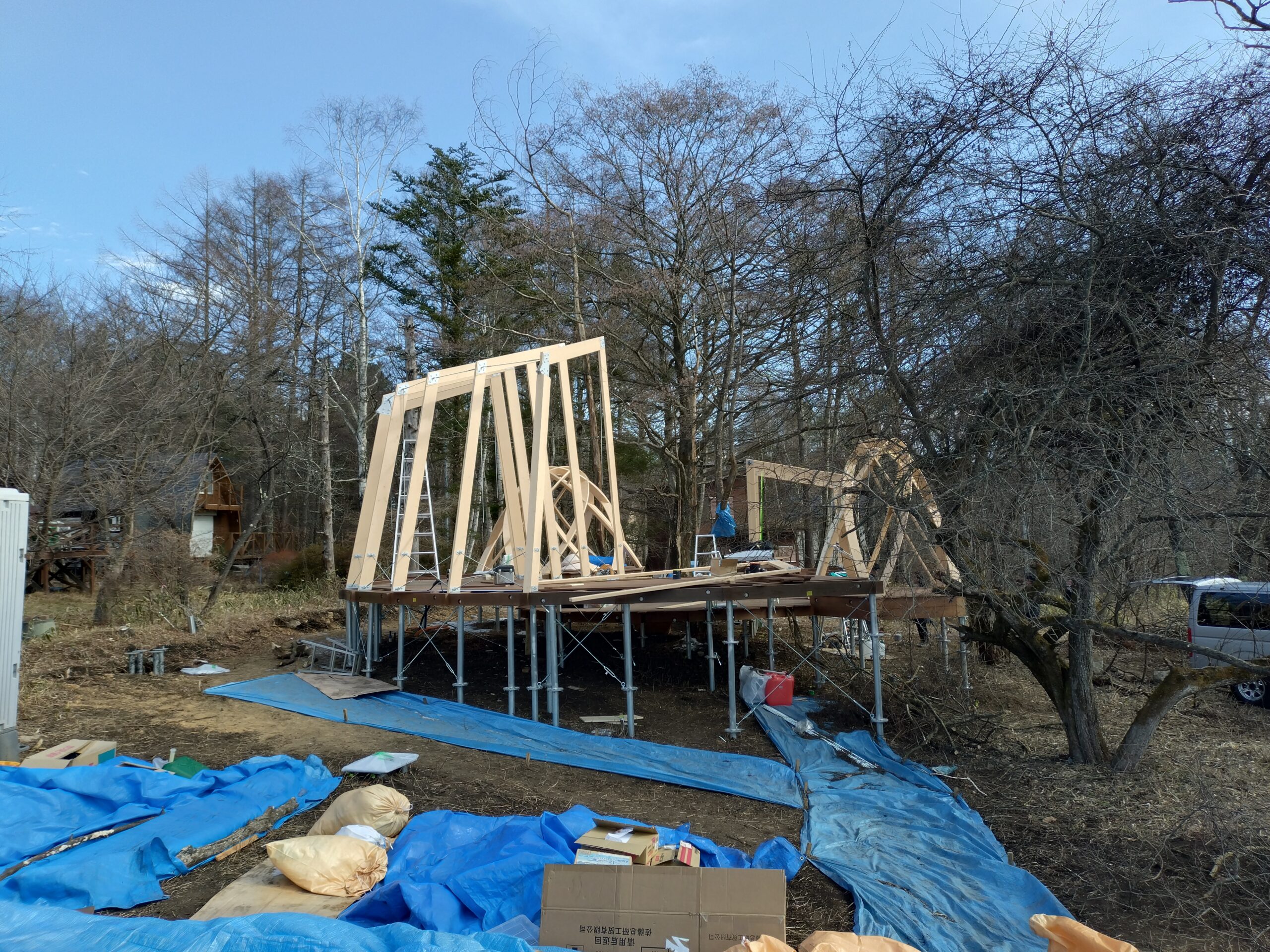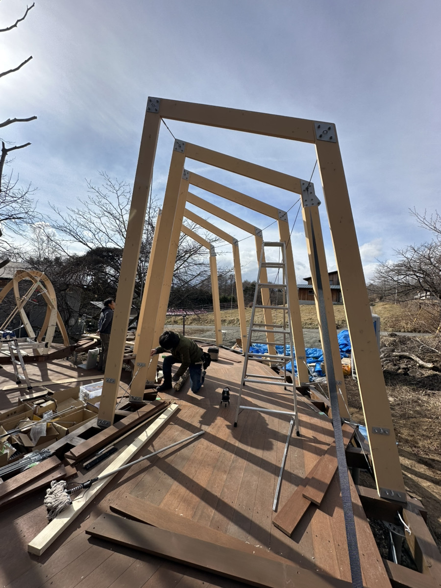 現在、デッキがある程度出来上がり、フレームを組んでいる状態です。