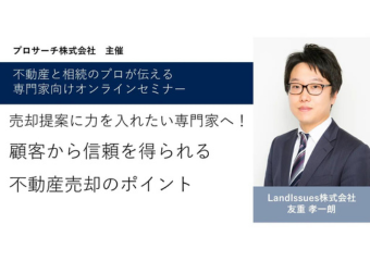 【オンライン】新作セミナー!! 売却提案に力を入れたい専門家へ! 顧客から信頼を得られる不動産売却のポイント -