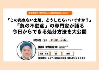 【オンライン】相続土地国庫帰属制度も詳しく解説! 「この売れない土地どうしたらいいですか?」 というお客様に感謝される“負動産”の処分方法を教えます -